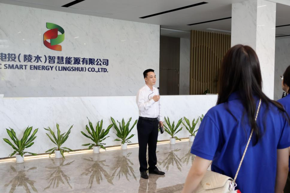 全体前往国电投(陵水)智慧能源有限公司参观学习。国电投(陵水)智慧能源有限公司董事长李海波介绍企业发展与绿色低碳成果,梳理校企合作渊源,强调党建联建是贯彻新时代党建要求、推动产教融合、服务海南自贸港建设的重要举措,要以党建引领校地企高质量发展。